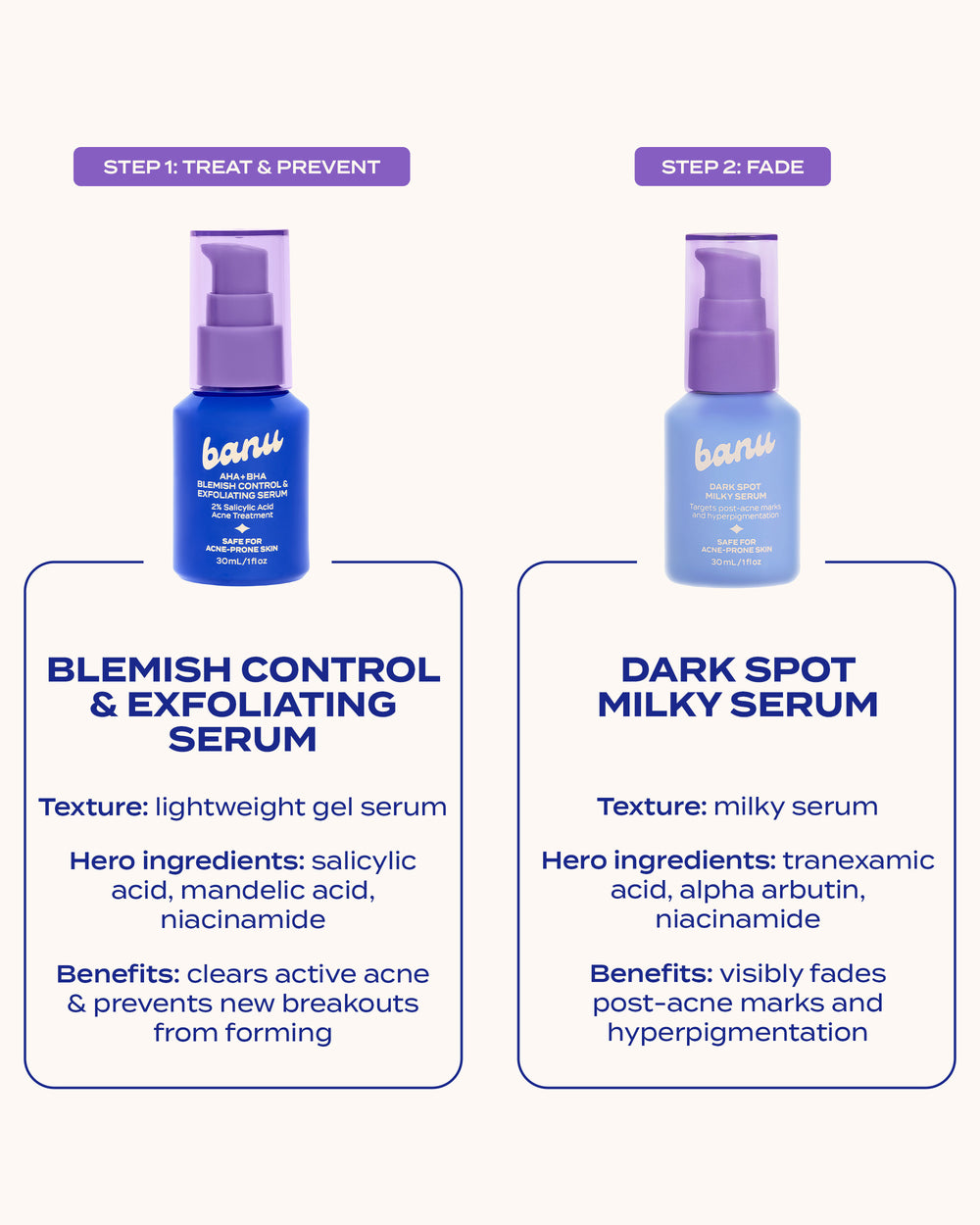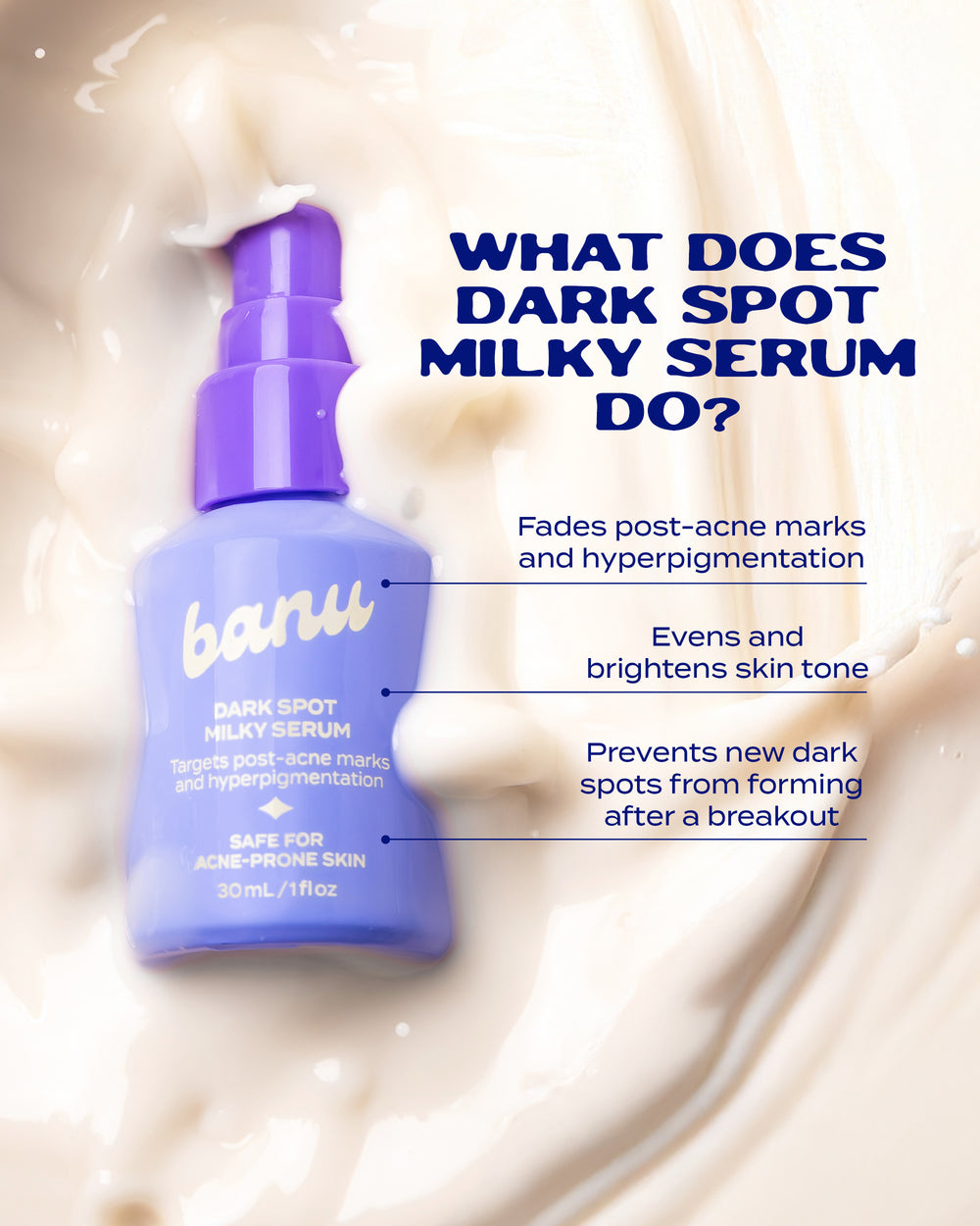 Absolutely. Dark Spot Milky Serum was designed to fit seamlessly into an acne routine. Just avoid layering it at the same time as strong exfoliating acids or retinoids if your skin is easily sensitized — alternating is a great approach.